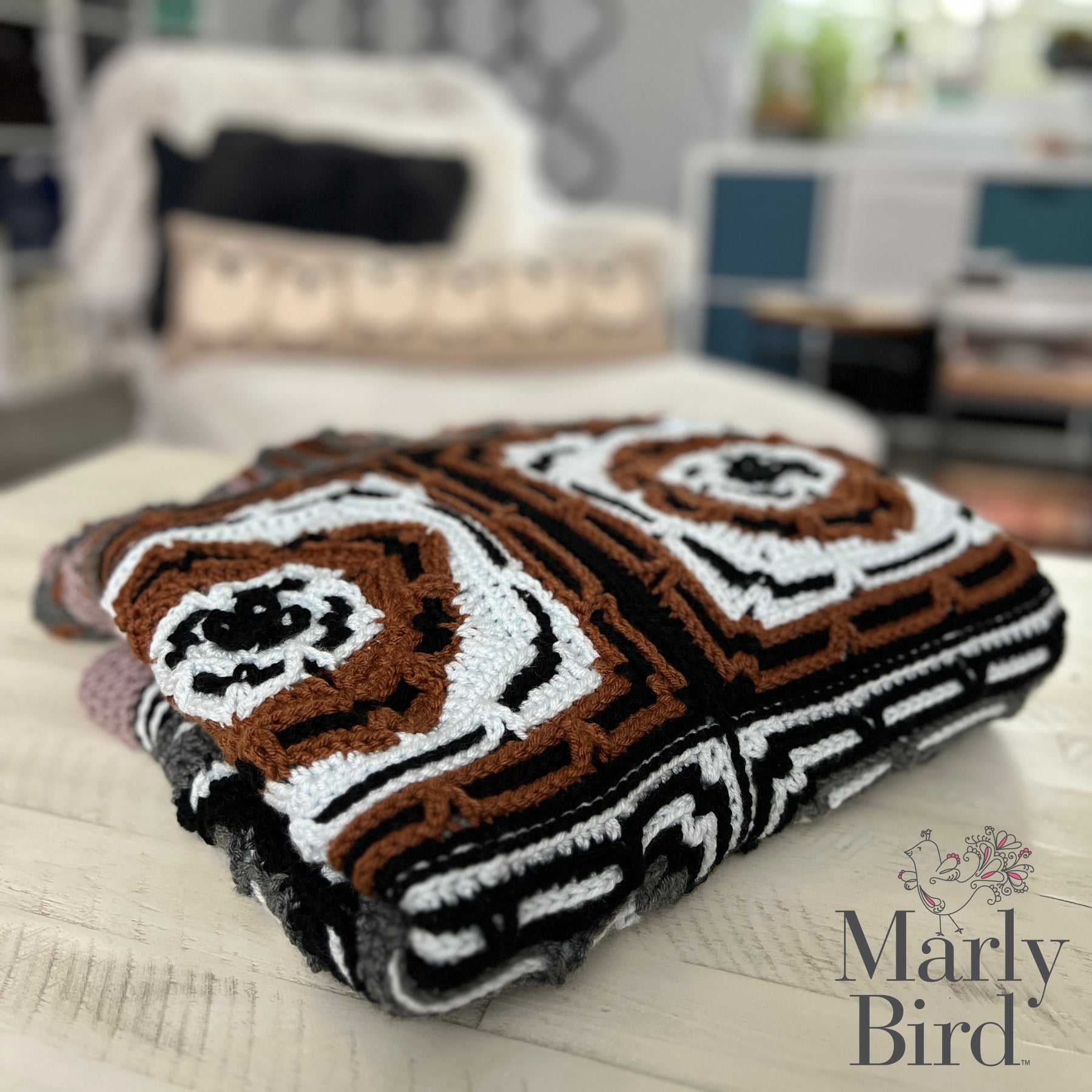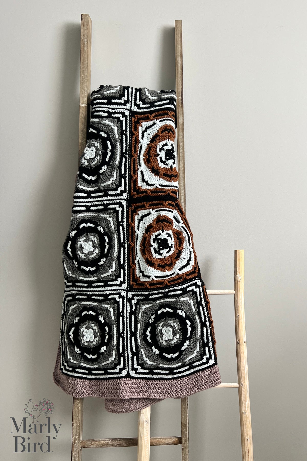 Designed by Robyn Chachula for MarlyBird.com, this crochet blanket pattern features stunning tile-inspired motifs arranged into a visually striking mosaic layout. Each block is worked in the round and combined to create a cohesive, contemporary blanket that’s both artistic and cozy.
