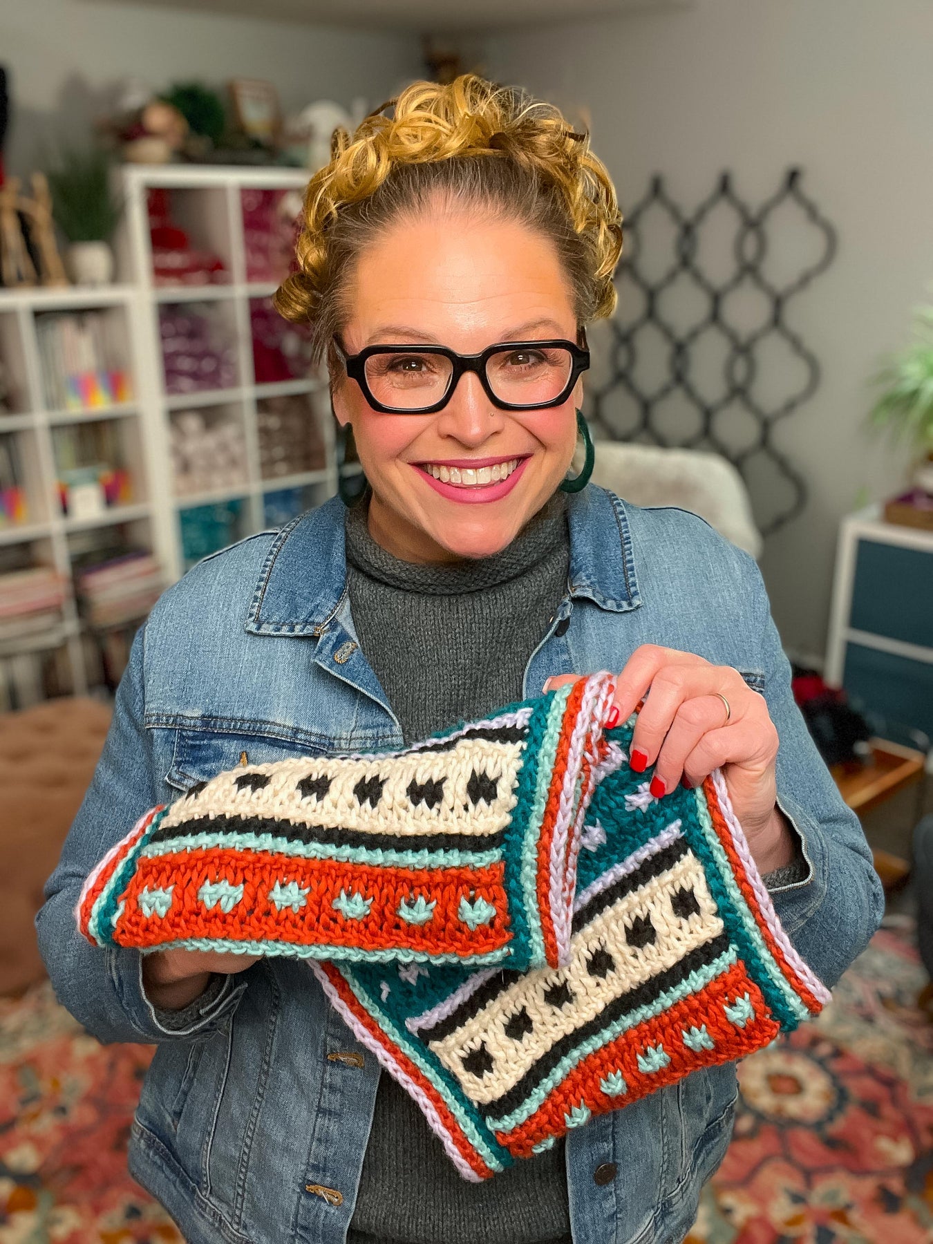 • Finished with a bold Tunisian edging worked in the round