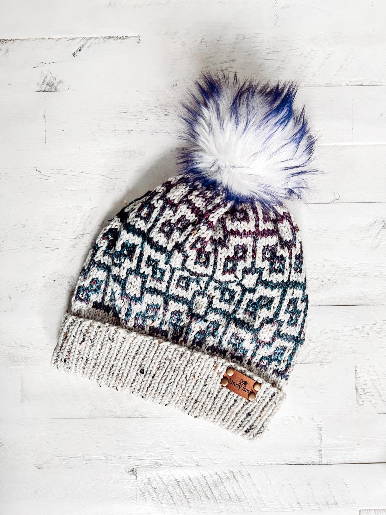 Designed by Marly Bird, this pattern includes multiple sizes, a cozy folded brim, and optional finishing touches like a pom pom or leather tag. Whether you’re new to mosaic knitting or already hooked, Sugar Biscuit is a must-make addition to your pattern library.