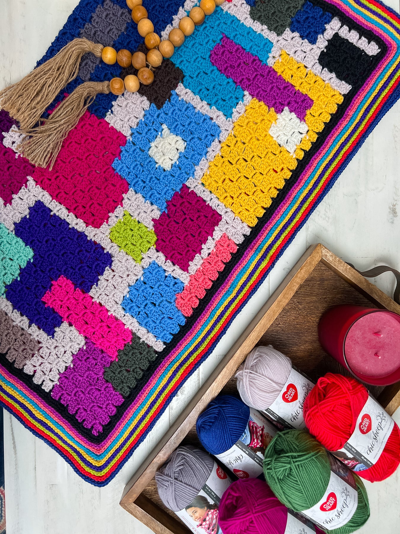 Worked diagonally using classic C2C technique, this blanket grows quickly and keeps you engaged as the colors come together. A clear color chart helps you stay on track, and the half double crochet border gives the finished blanket a clean, polished edge.