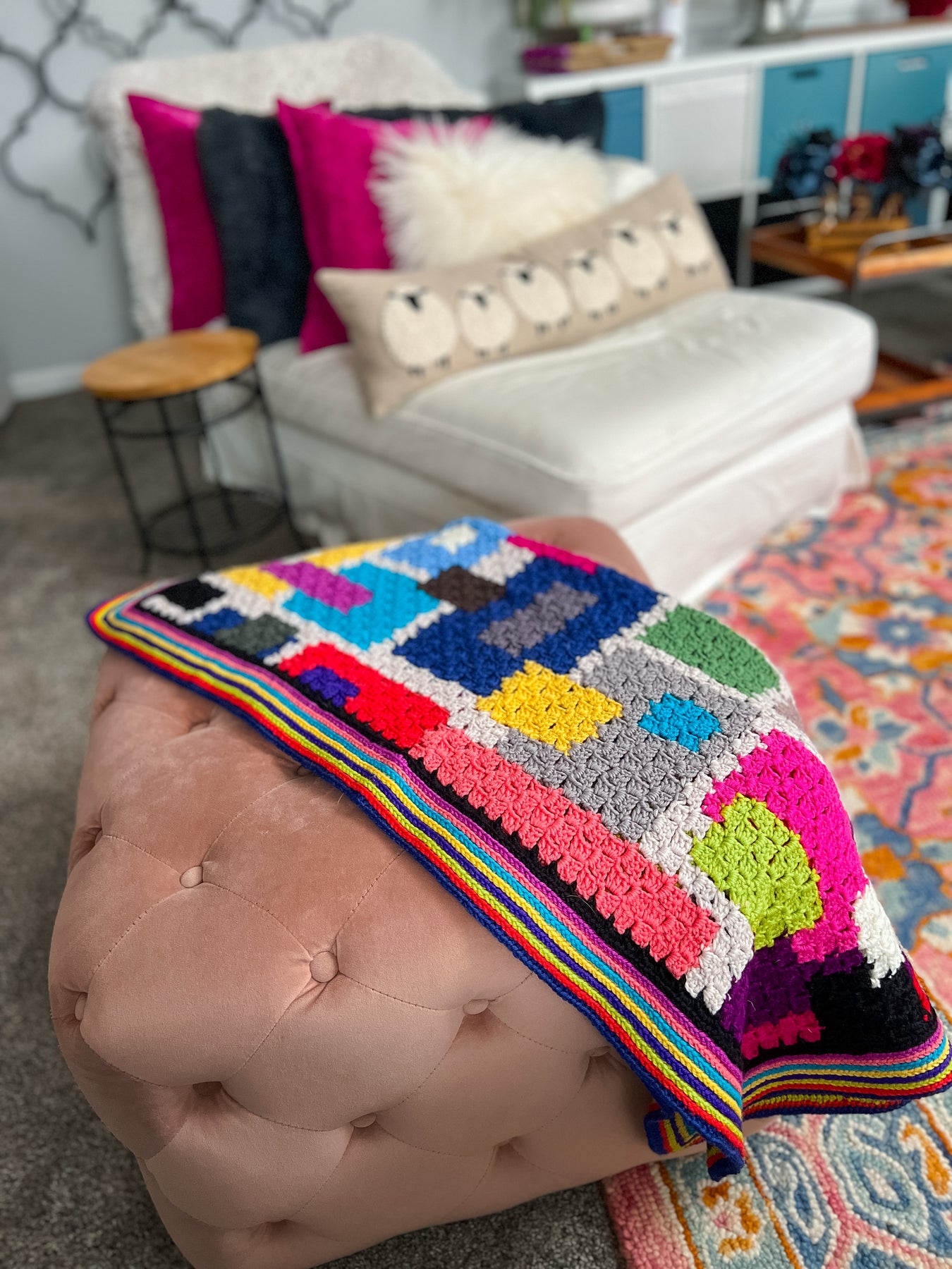 Day Dream C2C Crochet Blanket Pattern (PDF) — a bright, modern corner-to-corner crochet throw that turns simple blocks into a bold geometric design.